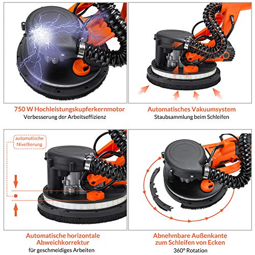 Specification: Monzana Schuurmachine 750 Watt Toerental 1750 rpm 12x Ø 225 mm Schuurschijven Incl. Zuigzak LED Verlichting…