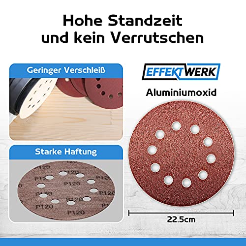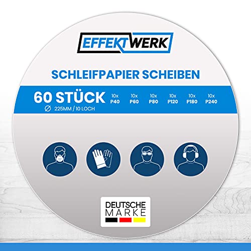 Specification: EFFEKTWERK Schuurpapier 225mm Klittenband – 60 stuks – Schuurschijven voor Giraffe Langhalsschuurmachine – 10 Gaten…